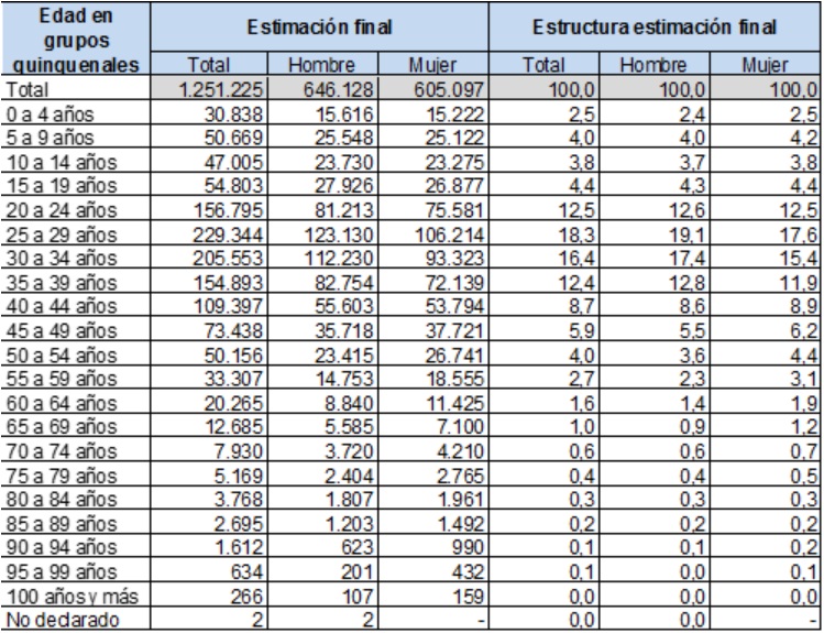 Otro aspecto relevante es el notorio aumento de la población de menores de entre 0 y 4 años, que desde la última medición a la publicada durante este jueves, pasó de 13.000 a 30.838. Fenómeno similar ocurre respecto a las personas de entre 20 y 24 años, quienes también duplicaron su presencia respeto al momento censal, pasando de 77 mil a 156 mil.