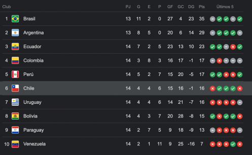 Chile sufre con uno menos y cede terreno en el camino hacia Qatar