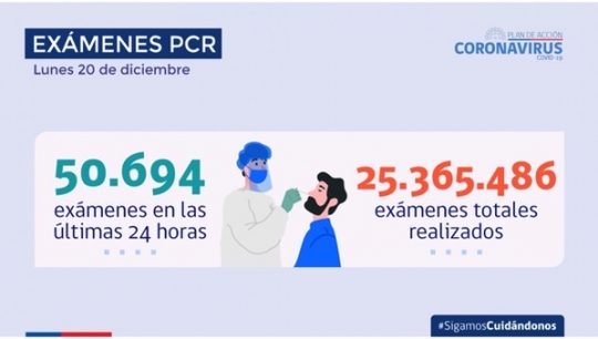 Estos resultados de 50.694 exámenes PCR realizados a nivel nacional, a los que se agregan 4.929 test de antígeno.