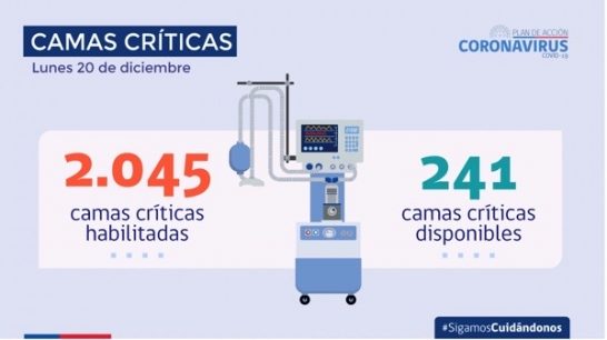 620 pacientes se encuentran hospitalizados por Covid en Unidades de Cuidados Intensivos. De esta cifra, 520 se encuentran en ventilación mecánica. A la fecha, hay 241 camas críticas disponibles.
