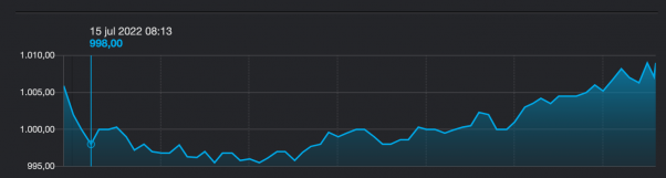El tipo de cambio se ubicó en los $997 pesos con 20 centavos a eso de las 8:10 hrs, bajando en comparación con el cierre anterior casi $50 pesos. Esto, tras el anuncio del Banco Central esta tarde, donde confirmaron una intervención cambiaria y provisión preventiva de liquidez, por un valor de hasta $25 mil millones de dólares. Esta comenzará a regir el día lunes.